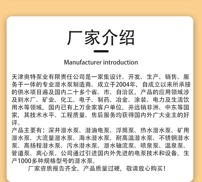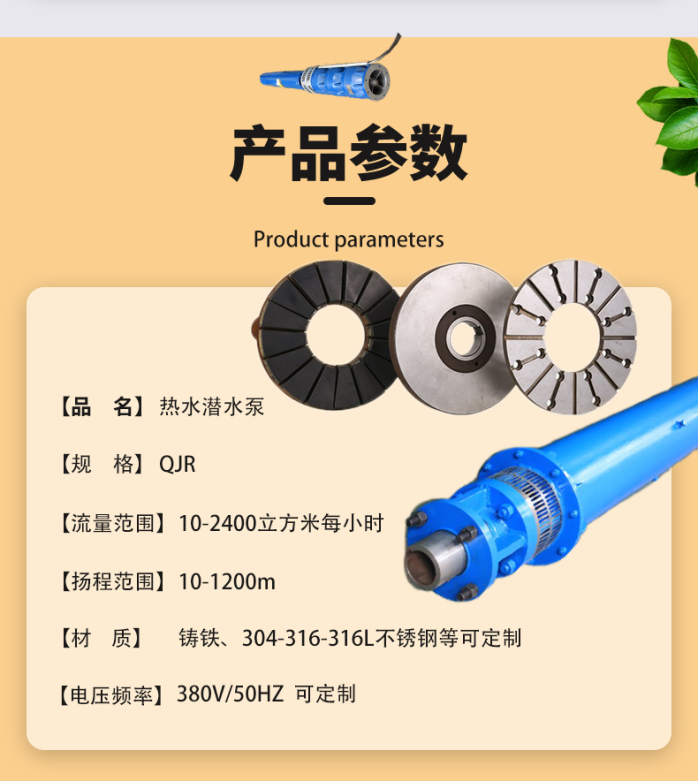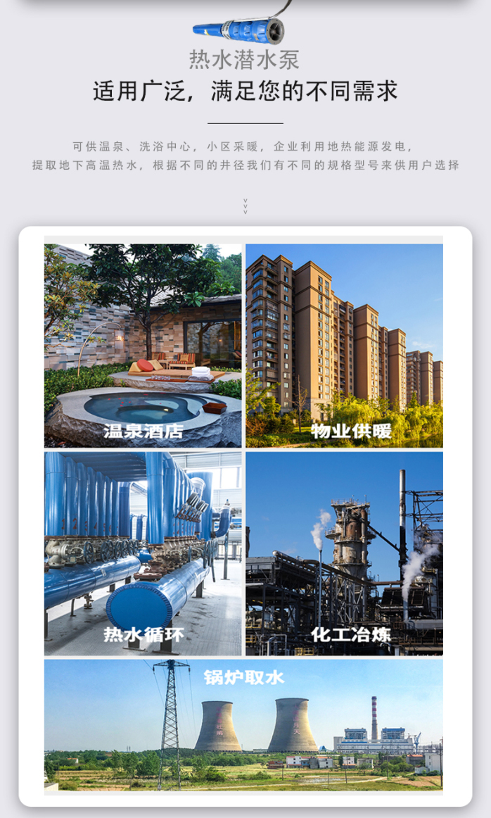 主营产品:温泉热水高温潜水泵、深井潜水泵,不锈钢潜水泵,热水潜水泵,污水潜水泵,螺旋离心泵,矿用潜水泵,潜水电机等