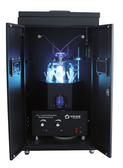 可旋转主机、箱体、滤光片(可见区+紫外区),CEL-QRT50反应管(石英反应管+独立磁力搅拌+控温冷凝器,实现控温、进出气、鼓泡等功能)