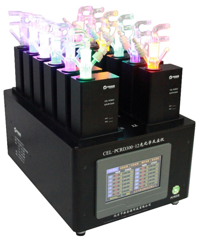 CEL-PCRD300-12光化学反应仪(LED),主要应用催化剂的筛选,提高光催化实验的效率,可以同时12位样品实验,实现了样品在不同波长不同条件下的分析,加快实验进程。实现了催化反应管控温、通气、真空、搅拌、选定各种波长等功能,标配的GDT气体分配仪也可以单独控制反应管的实验反应氛围。