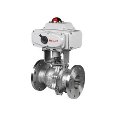 采用HL型、3810R型、PSQ型角行程全电子式电动执行机构为O型球阀的驱动装置,机电 体化的结构设计,具有机内伺服操作和开度信号位置反馈、位置指示、手动操作等功能,功能强、性能可靠、连线简单,以AC220V或AC380V电源电压作动力,直接接受统 标准信号(4-20mA DC、0-10mA DC或1-5V DC、0-10V DC),将此转变成与输入信号相对应的位移,以角度位移(0~90?)运动,改变球芯的旋转开度,因此 定的输入信号对应 定的位置开度,实现比例调节动作。(二位开关式接受AC220V或AC380V电源电压作动力,通过电机正反转实现开关动作,并同时输出开关阀位指示信号)。是 种高精度、高性能、高可靠性类产品。