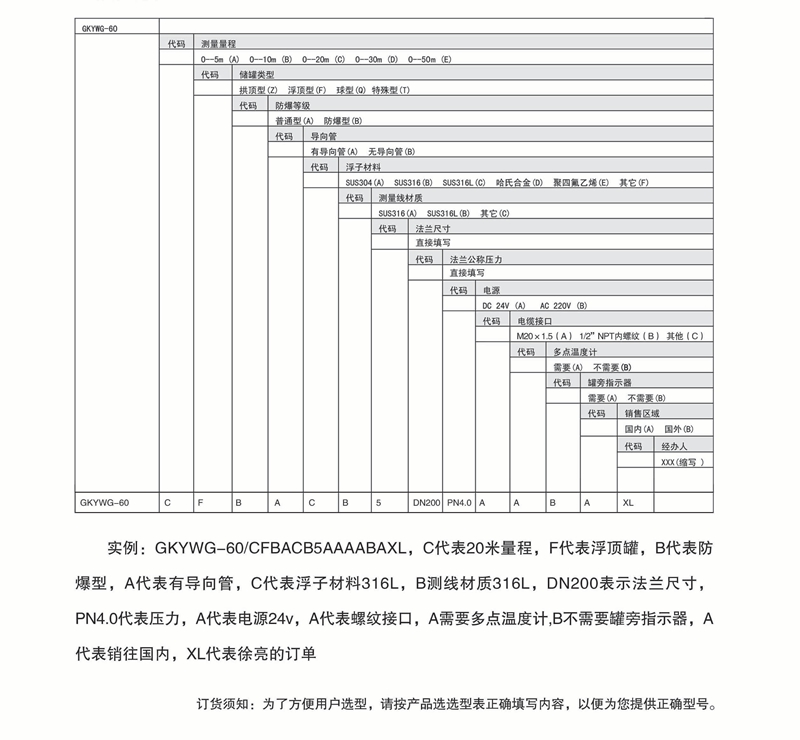 GKYWG-60伺服液位计的浮子在储罐中升降移动会受到液体的扰动和冲击,因此为了保证测量的平稳和准确建议加装导向管。
