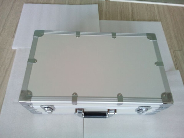 个镶有铝边并带有把手和两把锁的白色箱子,该箱子里装有发射器和其它 附件。该发射器是安装在盒子里,发射器的面板上有六个LED频率指示灯,且每个指示灯都代表某项功能,字母C开头的表示铜,字母S开头的表示银,字母G开 头的表示金,字母L开头的表示铅,字母T开头的表示锡,字母D开头的表示宝石。在指示灯的下面有个频率选择开关,可以自由调节您所需要探测的金属种类。频 率选择开关的下面,有两个旋钮,分别标有"水平"、"垂直"字样,分别代表探测深度与范围。左右各有 竖排十个指示灯,可以用水平或者垂直钮来调节您所要 选择的探测深度和探测范围(探测深度为50M,每5M 个指示灯共计十个,探测范围为1000M,每100M 个指示灯共计十个)。主 机面板 下方 排从左起为电源总开关,电源充电孔,以及 红 黑的两个发射天线插孔。充电电路已经被设计在仪器内部,电池安装在仪器中部的面板下面。(切 记:充电时请 用大陆公司赠送的220V转110V的转换器插入家用电插座然后将充电器接插在转换器上)