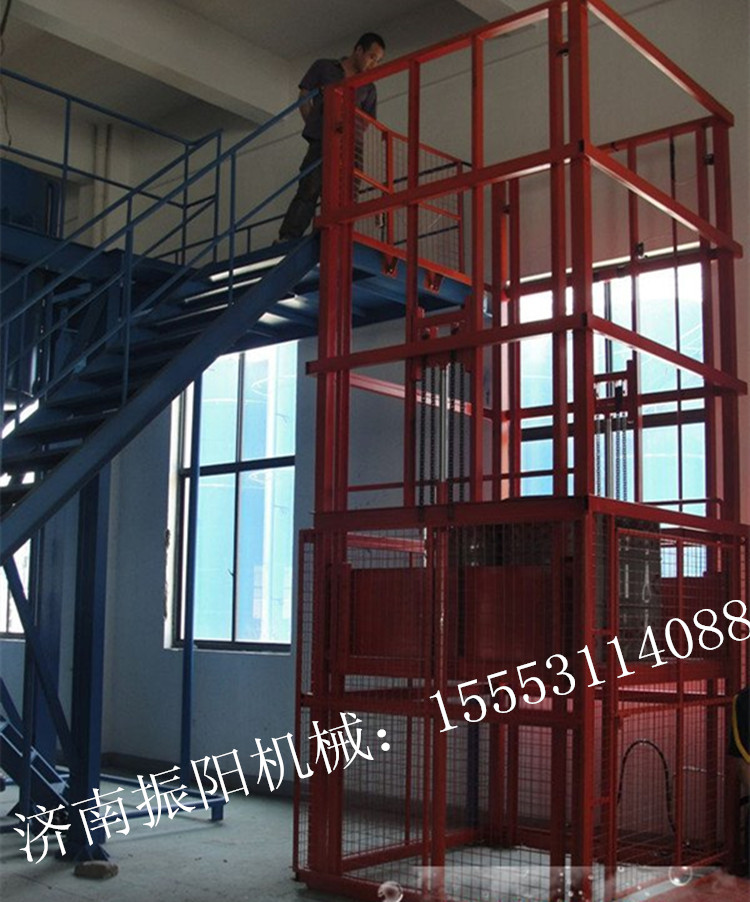 举升机主要用各种工作层间货物上下运送;立体车库和地下车库二层以上高楼间、无法开挖地坑场所、顶层高度不能到达要求的场合等比较难解决的狭小空间,产品液压系统设置防坠、上下层门互动连锁,各楼层和升降台工作台面均可设置操作按钮,实现多点控制。产品结构坚固,承载量大,升降平稳,安装维护简单方便,是经济实用的低楼层间替代电梯的理想货物输送设备。 根据升降台的安装环境和使用要求,选择不同的可选配置,可取得更好的使用效果, 大承载15吨,实现多点控制,上下楼层互动联锁,达到安全使用 提升高度高,采用旁置油缸、或双测式油缸,运行平稳、无噪声、维修方便停电手动下降、紧急停止按钮,方便、快捷、实用; 层门可贯通,厂房内外可相互戳开,方便、节省空间;用寿命较长; 特别适合2-6层钢结构厂房,内外部均可使用; 泵站采用进口泵站,如果速度要求过高,采用进口定制泵站,达到理想的送货要求, 油缸和密封件采用进口零部件,解决客户油压不稳定,零部件漏油问题。
