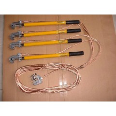 (4)接地软铜线有分相式和组合式,接地棒有平口式和双簧钩式线夹。