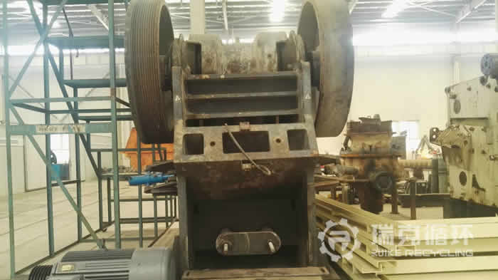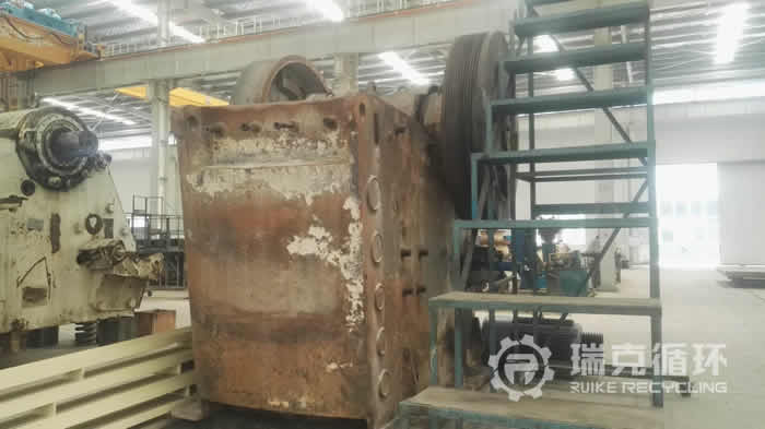 该台设备是我公司在云南某地回收的,由于当地是 个旅游城市,对各项环保要求提高了很多,该企业为了响应号召将设备转让向其它方面转型。该台山特维克CJ613颚式破碎机在使用的性能非常的稳定,只是外观的锈迹比较明显,我公司派技术人到现场对该设备进行检查,确认和客户描述的没有什么出入之后,在现场指导将设备拆开运回我公司。在我公司车间技术人员将设备整体拆来用工具检查该设备的实际使用情况,然后制定了维修方案,完成检修以后重新更换易损件,并在我公司试机平台进行了试机,各项数据符合标准之后,等待喷漆销售。