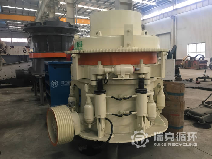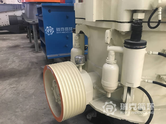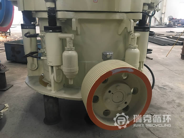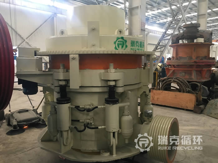 该台HP200多缸圆锥破碎机是我公司销售经理在内蒙古回收的,由于受到当地经济模式调整的影响,该企业将设备装让给我公司。在设备现场我公司的销售和技术人员详细的检查了设备的情况,符合我公司回收标准之后将设备拆除运回公司。在我公司车间 对该设备清洗之后拆机检查,用测量工具仔细检查每 个零部件,根据检查结果下发检修通知,并且将易损件重新更换,完成检修之后在我公司试机平台上进行试机,在试机中该设备的各项数据都非常的稳定,生产性能达标之后对该设备进行喷漆。