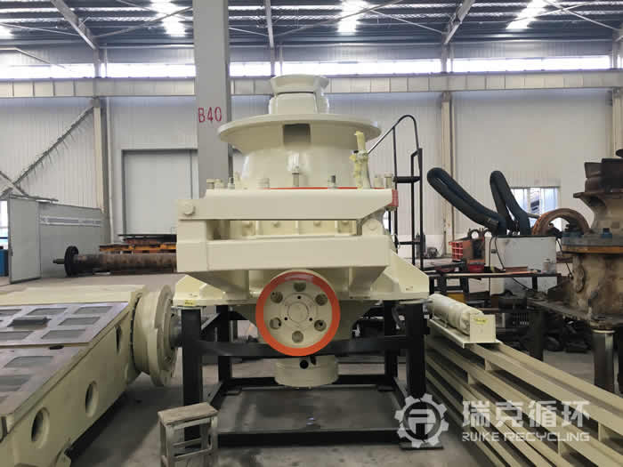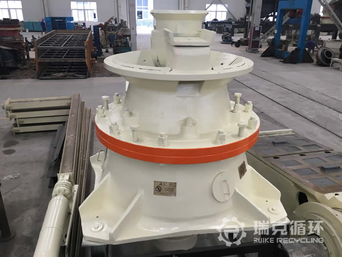 该台GPY1100/80液压圆锥破碎机是我集团公司洛阳大华生产的,于2013年底销往甘肃某地从事花岗岩的破碎工作,在使用的性能非常的良好,而且除了更换易损件以外,在我公司没有其它方面的维修记录,由于该地区环境保护的需要,让该区域内的企业整体搬迁,于是该企业将设备装转让给我公司。洽谈好回收事宜之后,我公司技术人员到现场对设备进行检查,除了设备有锈迹之外整体保存的比较完整,设备运到公司车间之后,将设备整体拆开检查,然后下发检修通知,完成检修之后在试机平台上运行了数个小时,各项数据符合标准之后,重新进行喷漆。