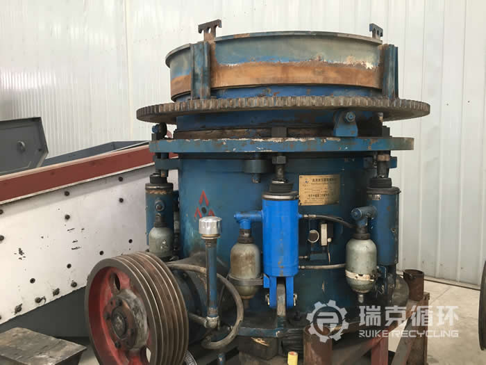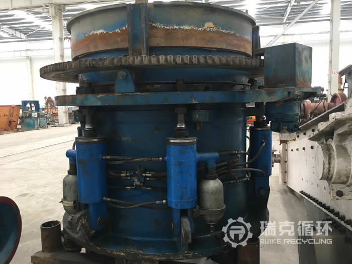 该台XHP200多缸圆锥破碎机在山东某地从事玄武岩的破碎工作,被我公司回收之前还处于生产状态,受到多方面影响该企业将设备整体转让,与我公司达成回收协议之后,我公司派技术人员到现场检查,并且指导将设备拆除运回公司。由于我公司回收之前设备还没有拆除,在现场我公司技术人员让设备运行检查,没有发现损坏等问题之后将设备回收,在我公司车间技术人员将设备清洗之后拆机检查,检查完成之后下发了维修通知,完成维修之后我公司试机平台上进行试机,各项数据符合标准之后重新进行喷漆销售。