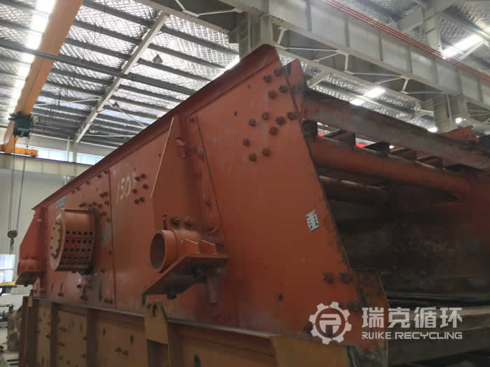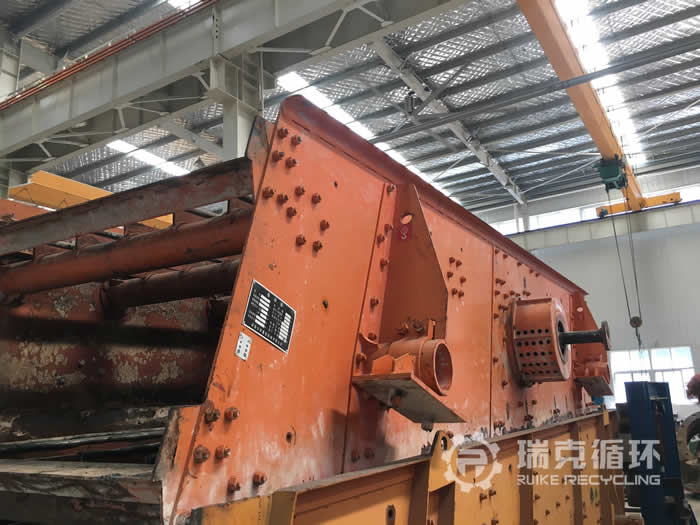 该台2YK1860振动筛是我集团公司洛阳大华重机生产的,被销往甘肃某地之后 直从事青石的筛分工作,在我公司除了有易损件更换之外没有其它方面的维修记录,于2019年6月被我公司回收,我公司技术人员也到现场检查了该台振动筛的实际情况,确定设备和客户描述的没有什么差别之后将设备运回公司,在我公司车间现场对该设备拆机检查、检修,完成检修之后进行了数个小时的试机,试机中该台振动筛性能非常的稳定,没有出现不良现象,可根据客户需要安装筛网,出售前重新喷漆。