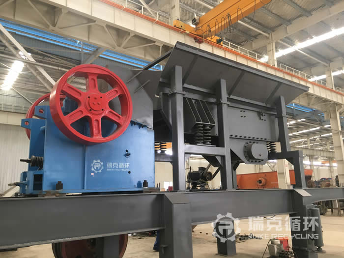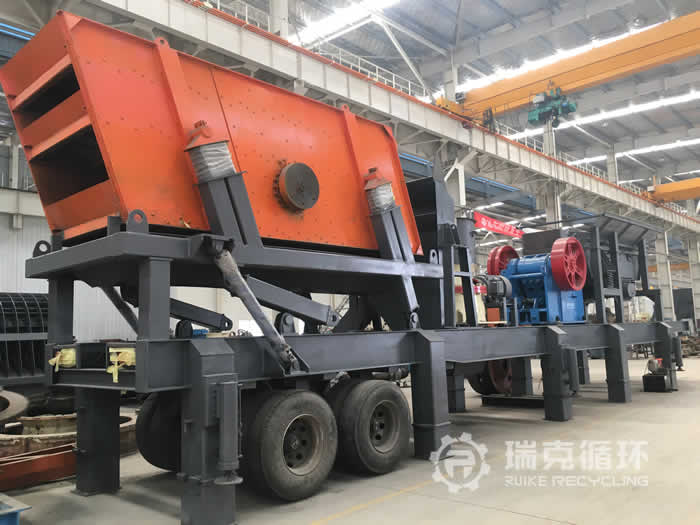 该台时产70吨砂石骨料轮胎移动破碎站是我公司为陕西某客户定制的,该客户于7月上旬到我公司考察,并且与我公司技术人员进行了探讨,由于客户的生产周期非常的紧张,固定式的破碎设备安装周期比较长并且移动不方便,因此和我公司探讨定制移动破碎站。该台70吨轮胎移动破碎站是我公司洛阳瑞克循环利用科技有限公司自主研发并且组织生产的,由 台车托起4台主机设备,这4台主机设备有新设备和二手设备,其结构合理、各个设备配合默契,经过不到20天的时间整台拖车就制作完成,即将发往客户现场,客户对我公司的生产工期、设计以及技术服务等都非常的满意。