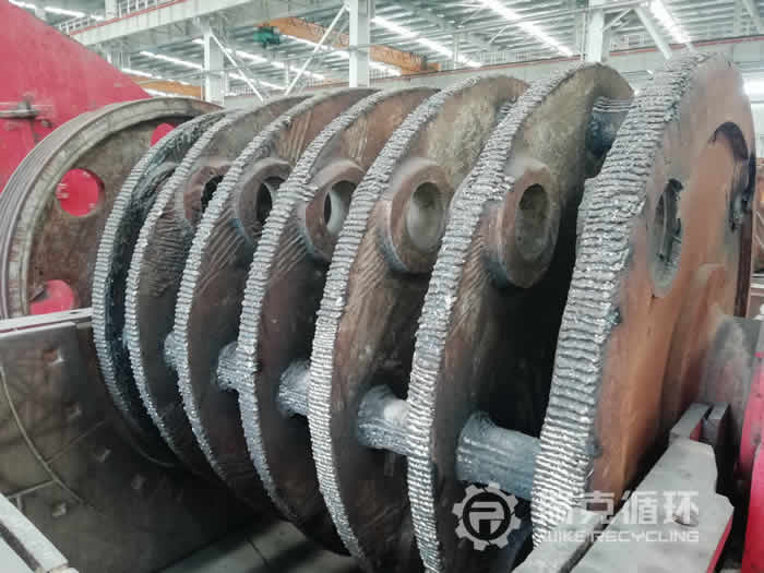 该台设备原 是在河北某大型石料厂使用,破碎原料为石灰石,原石料厂经营管理严谨,对设备使用维护的较好。后因政策和环保原因,该石料厂被拆除,现场使用设备处理,我公司于2018年12月将该台设备回收到公司后现有我公司技术人员对设备进行查看,后安排工作人员对设备进行拆解、清洗,技术部门对设备磨损程度检测后,整理出 整套的维修方案,对转子部进行补焊加工,轴承检测,对磨损比较严重的衬板及易损件进行更换,整套维修工作完成后,再对设备进行试机检查,然后喷漆。等待交付给客户。