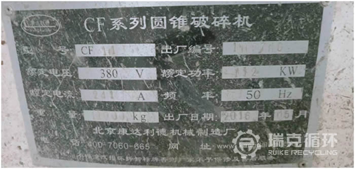 该设备原为砂石厂破青石用,后由于环保及手续不齐全被收回厂里。收回后除偏心衬套有部分烧黑现象,其它都没有问题。设备为2016年5月份设备,实际使用时间约1年时间
