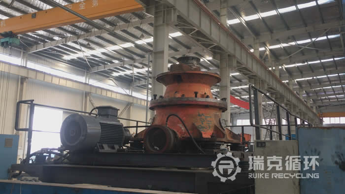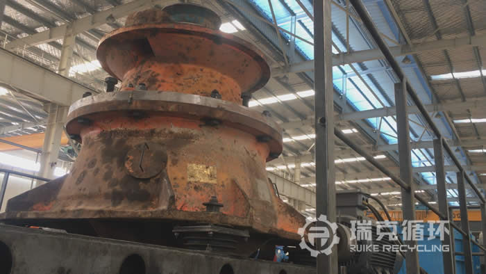 该台GPY1100圆锥破碎机是我公司于2019年8月在内蒙古回收的,由于当地会矿山行业进行整合,该企业因为资质问题停产,将设备转让给我公司。该设备是我集团公司洛阳大华生产的,我们对该设备非常的设备,接到信息之后技术人员就赶往现场对该设备进行检查,没有发现重大损坏之后将设备回收并运回公司。在公司车间对设备清洗之后用仪器对设备进行拆机检查,然后根据检查结果制定检修方案,完成检修之后重新更换易损件,并且在试机平台上进行试机,性能符合标准之后方能销售。