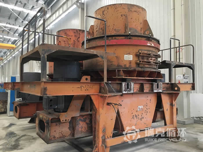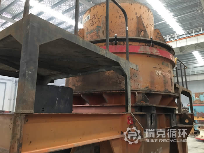 该台PL1000制砂机是我公司在山西某地回收的,该设备从安装之后 直从事石灰石制砂工作,由于石灰石的硬度较软,设备损耗也比较小,和我公司且谈好回收事宜之后,我公司技术人员即刻赶往现场对设备进行检查,发现没有较大问题之后将设备运回公司。对设备清洗之后将设备拆来检查,技术人员用测量仪器仔细检查零部件的实际情况,然后将检查结果作为依据制定检修方案,完成检修之后进行4-8小时的试机,在试机过程设备运行非常问题,性能符合要求之后方能销售。