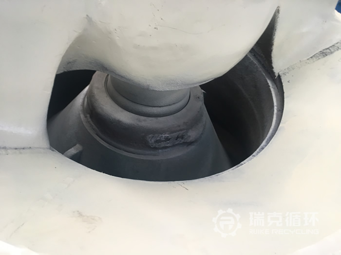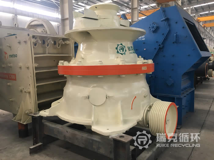 该台GP11圆锥破碎机是我公司于2019年11月在湖北回收的,由于该地区被列入湿地保护区,该企业被限期搬离,客户搬迁之后对生产工艺进行调整,到我公司考察购买生产能力更大的设备,并将该设备进行置换。我公司技术人员到客户现场对该设备进行检查之后,在现场指导将设备拆除运回公司,在我公司车间对设备进行清洗之后整体拆开,用仪器测量各个零部件的有无偏差,然后制定检修方案,完成检修之后在进行数个小时的试机,试机中设备运行的非常稳定,各项性能也符合要求。
