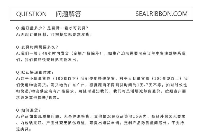 海豹智能科技(广州)有限公司致力于 进标识设备销售和售后,经销喷码机,热转印打码机,手持喷码机等;同时也是专业碳带生产厂家,热转印打码机碳带、平压碳带、标签打印机碳带、条码打印机色带、打印头擦拭纸品种齐全、价格合理。本厂实力雄厚,重信用、守合同、保证产品质量,以多品种经营特色和薄利多销的原则,赢得了广大客户的信任。支持定制/零售/ 件代发/批发。