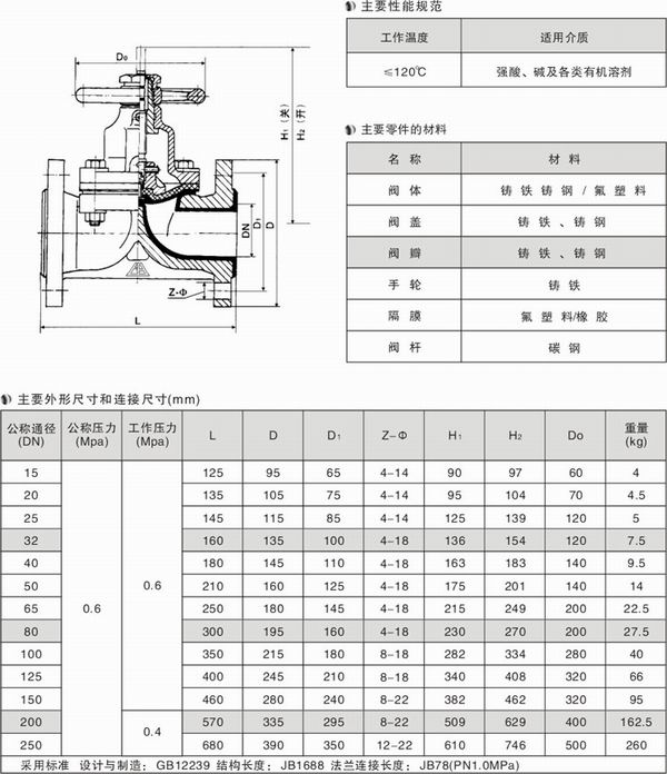 衬氟隔膜阀基本系列为全衬里G41F46、EG41F46、型堰式和G45F46型直流式。复合隔膜阀将阀体下部内腔与阀盖内腔隔开,并与之形成直流通道,使隔膜上部的阀杆、阀瓣等内件与介质完全隔离,省去填料密封结构,介质的内漏和外漏可同时避免。表面均匀包覆 层FEP。阀体通道内表面光滑,流体阻力小,CV值高,流通能力强,扭矩适中,采用四 密封结构并在密封面外配以耐温抗老化的SI橡胶的弹性衬垫阀座,完全达到介质的零泄漏。
