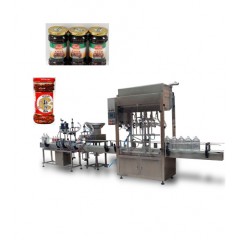 科胜公司生产的辣椒酱灌装生产线、不管是芝麻辣酱,还是炸酱面酱、辣椒酱、番茄酱、甜面酱等,其都是日常饮食当然中主要的调味品,与我们的生活息息相关、科胜提供的用于此类产品生产的酱料灌装机,必须要在材质、卫生等方面有着严格的要求。具有酱料灌装误差小,调整、清洗、维护方便等优点,是理想的颗粒浆状粘度流体充填设备。该机为全自动活塞式灌装机,可灌装颗粒浆状流体物料。