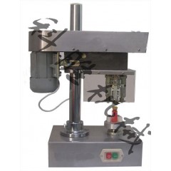 该机为台式三只旋风刀式轧盖机,台面用不锈钢板制成,整洁耐腐蚀易清扫,轧盖刀头系用优质钢材加工而成,表面谇火处理,经久耐用。工作时,被轧盖瓶不转,均布 120°三只旋风刀旋转轧盖封口,刀柄设计为弹簧结构,三刀的距离可以微调,适应性强,轧盖成品率高,马达罩也选用不锈钢罩 ,整机外型整洁,适用价值高,加工工艺精良,使用操作方便简单理想生产设备。