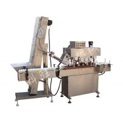 该机种设计新颖独到、机械扭矩控制智能化,并且操作与调节十分便利,操作人员只需将瓶盖置于瓶口上,瓶子在向前运行的过程中,瓶盖被三组搓盖轮自动拧紧,我们有提升式、斜盘式、震荡式等落盖系统,可根据实际需要选配。