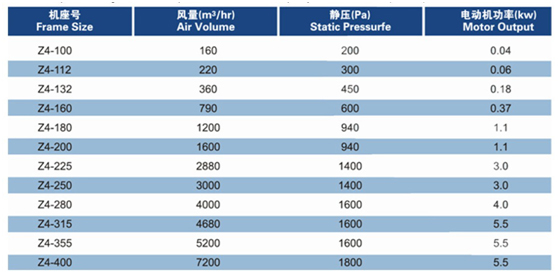 电机的基本冷却方式为IC06,即自带鼓风机的外通风;也可以为IC17,即冷却空气进口为管道、出口为百叶窗排风;也可以为IC37,即冷却空气进出口均为管道。并有多种派生形式,如自通风型、带轴向风机型、封闭型、空/空冷却器型等。各机座号电动机需冷却风量、风压及风机电动机功率等数据见表1。整个系列电机的外壳基本防护等 为IP21S。