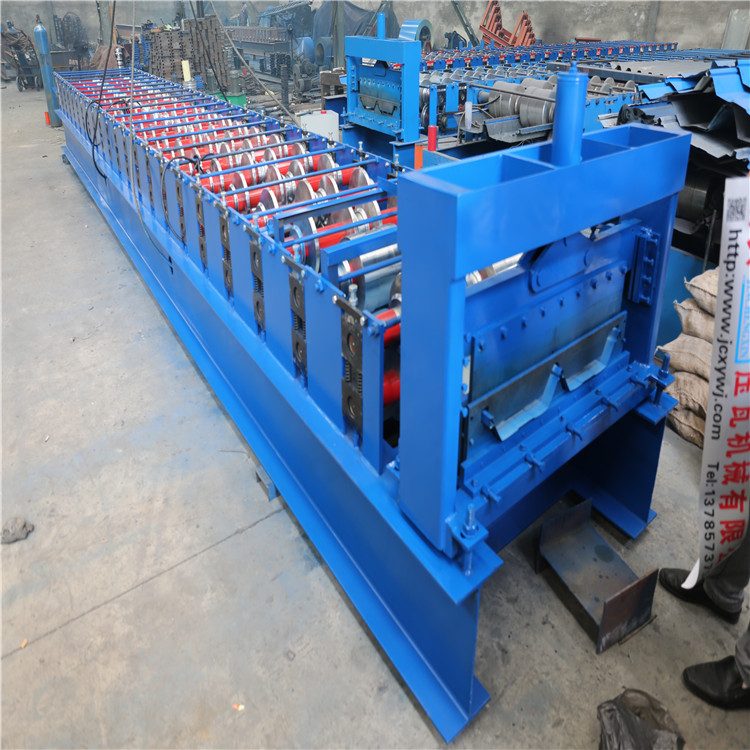 760型角驰压瓦机是更新传统屋面成型机的产品,该机主要由装料架,装料架支座,进料导入平台,成型主机,成型剪切装置,液压站,电脑控制箱等几部分组成。