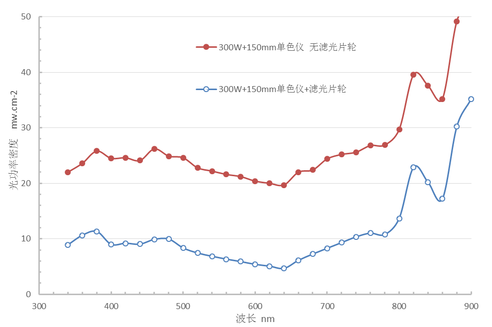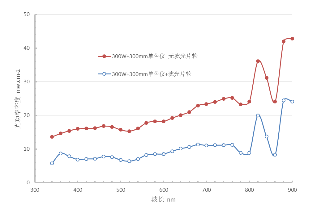 滤光片轮的主要作用:多 光谱属正常的衍射现象,是具有公倍数波长的光谱同时从单色仪的狭缝里出来,引起单色光的纯度下降。例如,当单色仪处在600nm时,600nm的1 光谱、300nm的2 光谱和200nm的3 光谱都会从狭缝里出来,而此时只有600nm的1 光谱才是我们需要的。为了去处2 、3 乃至多 光谱,通常采用长波通滤光片来滤掉短波长的辐射。