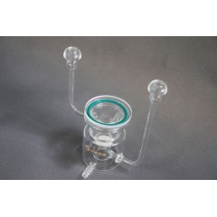 光解水CO2气固控温 体在线反应器,内含可更换砂板 片,可添加微量水,适用光催化活性评价系统,选配反应器,容积50ml,其突出特点含有活动砂板放置催化剂,用于气体循环催化CO2还原,采用28#标准球磨口,法兰O型圈密封。