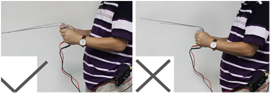 使用者必须以放松姿势站立,两脚稍微分开,双臂紧贴身体但不要太紧。握住接收杆时,手掌和手腕不宜太用力,使其在手中自动达到平衡状态,并始终相互平行。手握杆时,使其与地面平行,以增加其敏感性,或稍微向下倾斜5-8°,达到更好的平衡状态(若你是的分子频率探测的新手)。 重要的 点是练习持杆的方法,直到两杆不再相互“移开”。