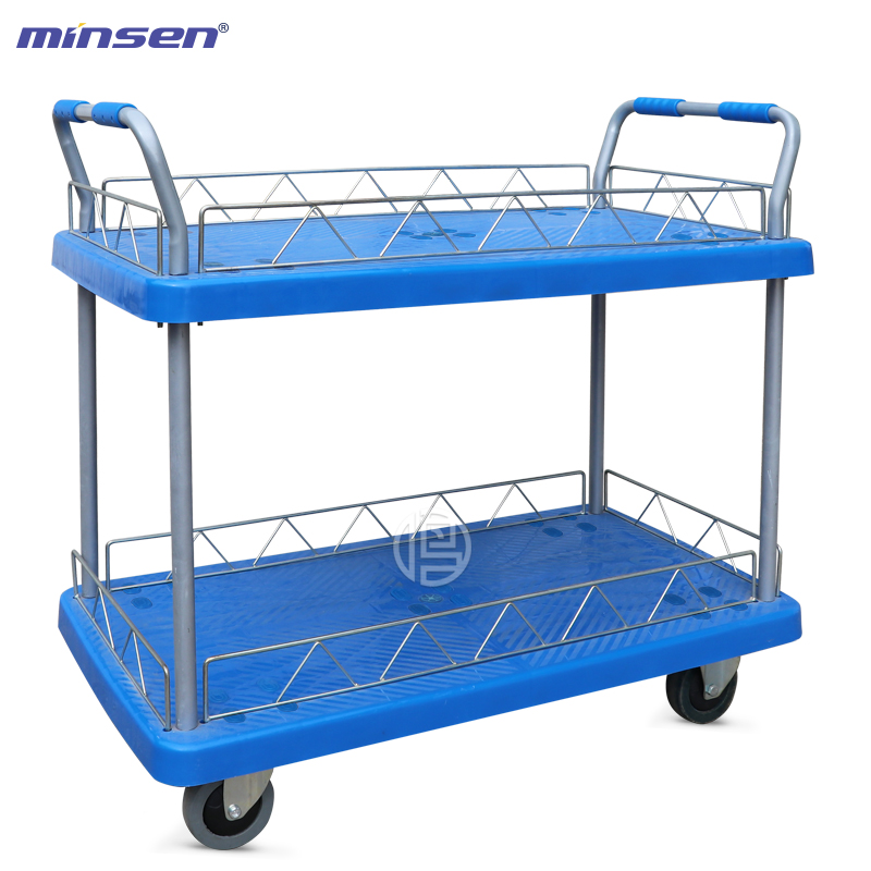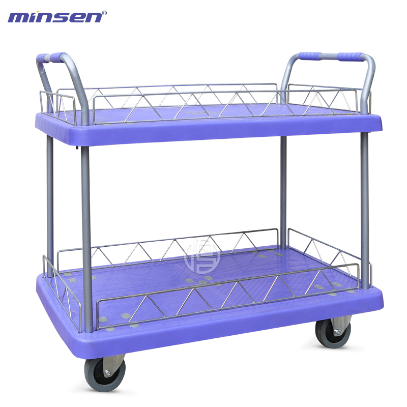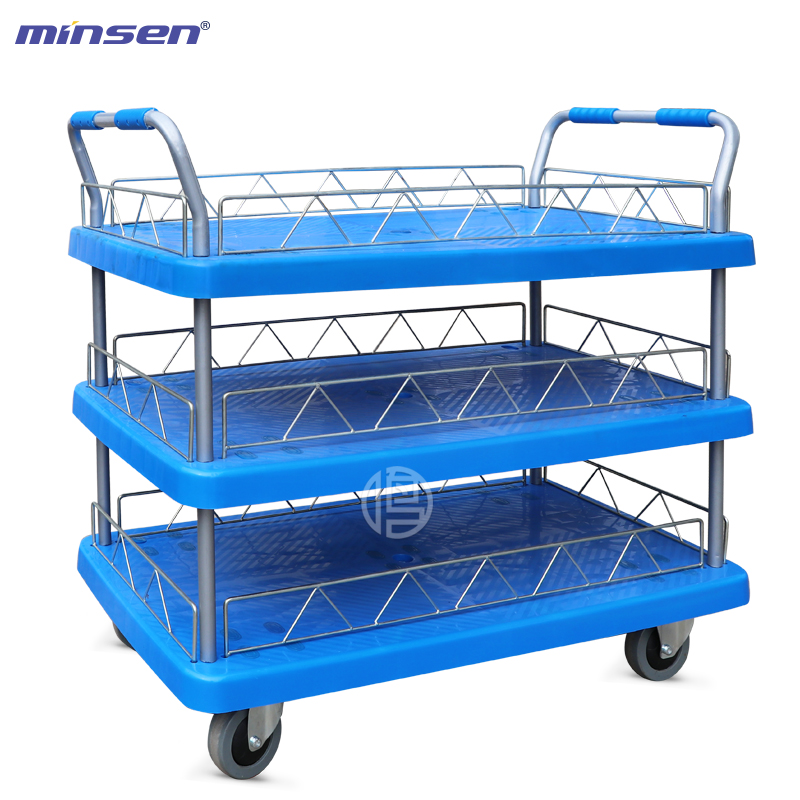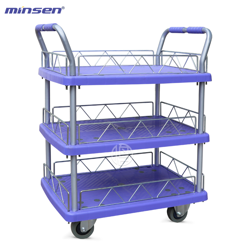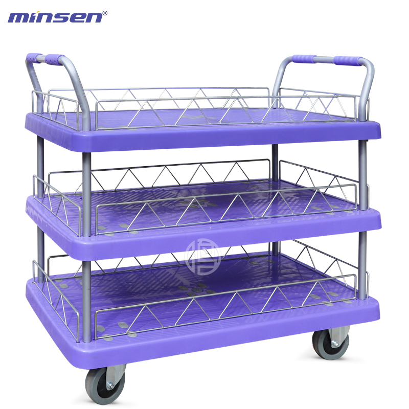 鸣升 静音推车 两层/三层推车静音脚轮、餐厅推车、餐饮搬运车、带护栏推车扶手
