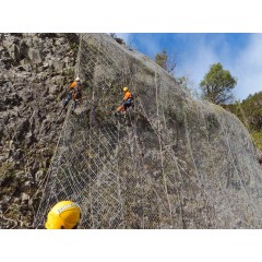 网型:DO/08/300+SO/2.25*10.2(DO/08/300表示由直径为8mm的钢丝绳编制成的网孔尺寸为300mmx300mm的钢绳菱形网; SO/2.25*10.2:表示由直径为2.25mm的钢丝编制成的网孔尺寸为10.2mmx10.2mm的钢丝格栅网。);