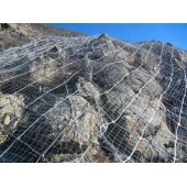 在对危石分布集中的边坡采用主动加固防护时,应从施工安全考虑,对作业方式作出调整。特别是危石呈堆积状的坡面,由于表层危石的崩落可能牵引危石的后续崩落,形成以多个块体同时崩落的落石群,对施工人员和坡脚被防护物的威胁非常大。因此,实施这种防护工程时需要注意, 在危石周边的稳定地层上实施锚杆锚固,然后以周边锚固为拉结点,用钢丝绳或柔性网将危石捆绑或加固起来,在确保施工人员的扰动不会导致危石发生崩落的前提下,再进行该区域防护网的施工安装。而在防护网安装完成后,可根据现场情况对坡面稳定性威胁较大的危石采取 些加强措施,如直接在危石上钻孔进行锚杆锚固,然后用 道或多道大直径的钢丝绳对其进行向上拉结,以平衡其部分下滑力,增加其稳定性。