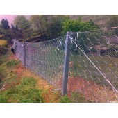 被动防护网,即形式上与标准主动防护系统相似,但发挥的主要是被动防护作用。其与起加固作用的标准主动系统的主要差别在于无需进行系统锚固和预张拉来确保系统尽可能的紧贴坡面,仅通过周边和内侧局部锚固将柔性网系统自然覆盖(披挂)于坡面,甚至可仅采用上沿锚固和上沿支撑绳作为悬挂支承,形成简单的“窗帘”式结构。既凭借系统自重覆压作用给潜在崩塌滑落体提供 定的稳定加固作用,部分限制崩塌的发生,又允许落石在系统与坡面构成的相对封闭空间内有 定限制地顺坡滚落,从而使落石在控制条件下顺坡安全向下滚落直至坡脚或坡上平台而不危及安全防护,而不是阻止崩塌的发生,它对崩塌落石发生区域集中、频率较高或坡面施工作业难度较大的高陡边坡是 种非常有效而经济的方法。它与被动防护系统相比的主要优点在于清理工作十分简便或无需清理,并避免了被动防护系统防护高度设置不足时可能发生的落石飞越,在边坡高度不太高时,该方法更为经济,且两者在 定条件下可配合应用。该系统除主要用作崩塌落石防护外,还可用作爆破飞石防护。