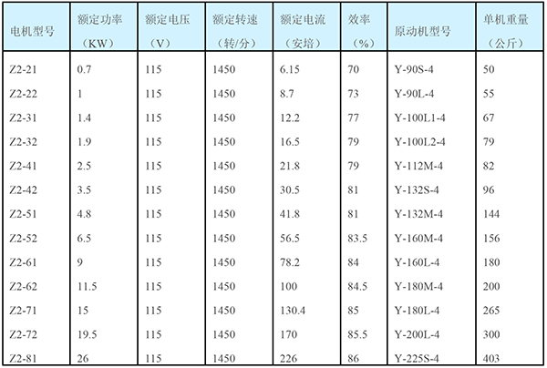 Z2系列发电机(115伏,1450转/分)