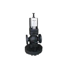 启动前导阀弹簧处于自由状态时,主阀和导阀处于关闭状态。导阀有弹簧力作用打开,蒸汽经由导阀进入主隔膜室, 部分蒸汽则经由控制孔流出,当导阀流入的蒸汽大于由控制孔流出的蒸汽,主隔膜阀中的控制压力增大,打开主阀。随着蒸汽流过主阀,下游压力的增量经由感应管反馈,作用在导阀隔膜下,平衡隔膜上部的弹簧压力,使导阀组建关闭节流,维持主隔膜中的压力,控制主阀开度输送适量的蒸汽。调节导阀隔膜上的弹簧即可改变下游压力。