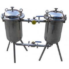 双联过滤器适用于除去鲜奶、糖液、饮料等液体中各桶内眼看不见的固体物的净化。两只过滤器交替适用,可不停机更换滤布,适于长期连续生产。双联过滤器全部采用不锈钢制造,是二个圆柱桶组成,系单层不锈钢焊接结构,内外表面抛光,顶部装有放气阀,以便工作时放气之用。 管道接头采用复合连接,经0.3MPa水压试验,三通外螺纹旋塞开关灵活,该设备结构紧凑,操作方便,维修简单。 欢迎新老客户洽谈合作 ,共同发展131 0383 3308