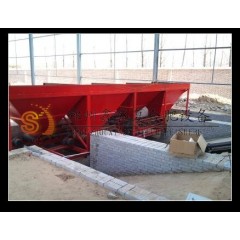 1.皮带式定量配料机:其结构多为上部是原料储料斗,下部为计量斗,底部为卸料输送皮带,储料斗用于储存待配原料,储料斗底口下方正对配料输送皮带。 其原理:配料开始,皮带机启动带出储料斗中原料至设定值时皮带停止,然后在控制仪表控制下,依次配置下几种物料,至所有物料配置完毕,仪表控制启动卸料皮带将物料送入下 环节(如搅拌机提升斗或输送皮带机等) 皮带配料式多用于中小型施工现场,因其物料基数较小如XSPL800配砂500Kg,按≤±2%误差计,误差 对值在0~20Kg之内,因此为进 步提高配料精度、减小误差值但又不影响配送效率,可采用低速配料、快速卸料方式。误差可控制在0~5Kg之内。(使用此类配料机的用户为降低采购成本,多希望借用配料机的计量斗来同时计量散装有机肥原材料,通过螺旋输送机将原材料传送到配料机计量斗)