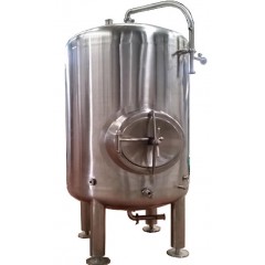 啤酒发酵罐罐体为圆柱形,顶盖为碟形,底盖为采用60°~90°倾斜度的锥形有利于罐中酒液对流强烈,发酵速度快,而且利于排放酵母和发酵罐中杂质;在酒精发酵过程中,为了回收CO2气体及其所带出的部分酒精,发酵罐宜采用密闭式。罐底部有手孔、与罐顶连接的CO2、空气、CIP等的进出管、内容物容积测量装置、空罐探头及保压装置等。