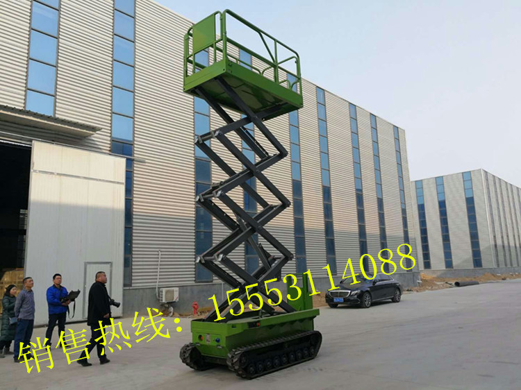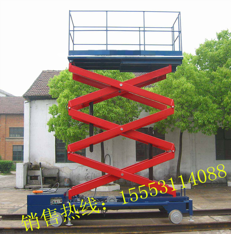 电瓶行走升降机是用途广泛的高空作业专用设备,当工作场所工作人员少或无其他牵引设备配合的工作环境就可选用该产品。当它的剪叉机械结构,使升降台起升有较高的稳定性,宽大的作业平台和较高的承载能力,使高空作业范围更大、并适合多人同时作业。升降动力分为220V或380V电源,柴油机,或电瓶动力源,特殊环境也可采用防爆泵站及防爆电器,升高4——22米,载重0.3—3吨。采用意大利和国产液压泵站,台面使用防滑 缘扣板,具有防滑, 缘、安全,请放心使用。它使高空作业效率更高,安全更保障。适用范围