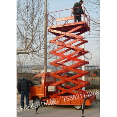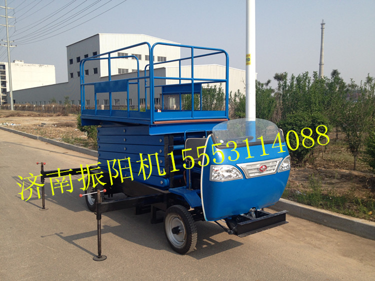 4、采用汽车、三轮车或电瓶车底盘做平台底架,利用本车发动机或直流电做动力,既可行驶又可驱动平台升降。