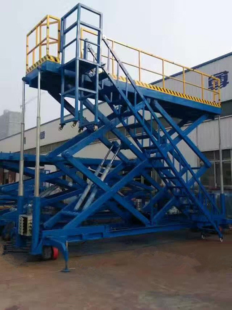 2、升降高度稳定性,能满足大吨位货物平稳举升.设有防附,超载安全保护的液压系统,保障运行安全