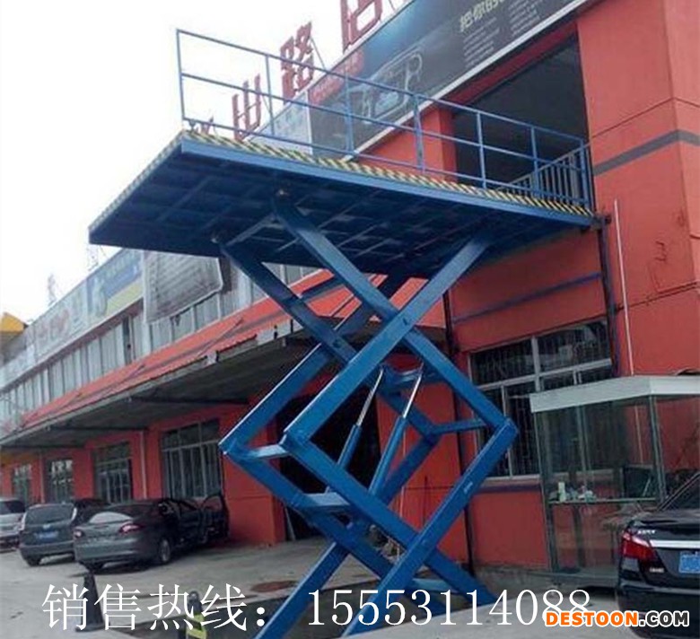 固定式升降平台广泛应用于车间、仓库高空输送货物、汽车4S店、停车场高空输送汽车、工地、厂房、仓库、粮库、车站、宾馆、机场、码头、加油站、体育厂、高架管道等高空货物输送及高空作业。室内、室外、都可安装。
